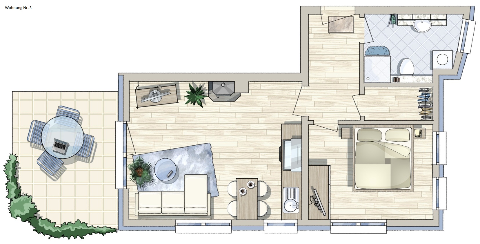 (1 Bett = 160 x 200cm) & eine Couch (ausziehbar, Liegefläche = 120 x 200cm)